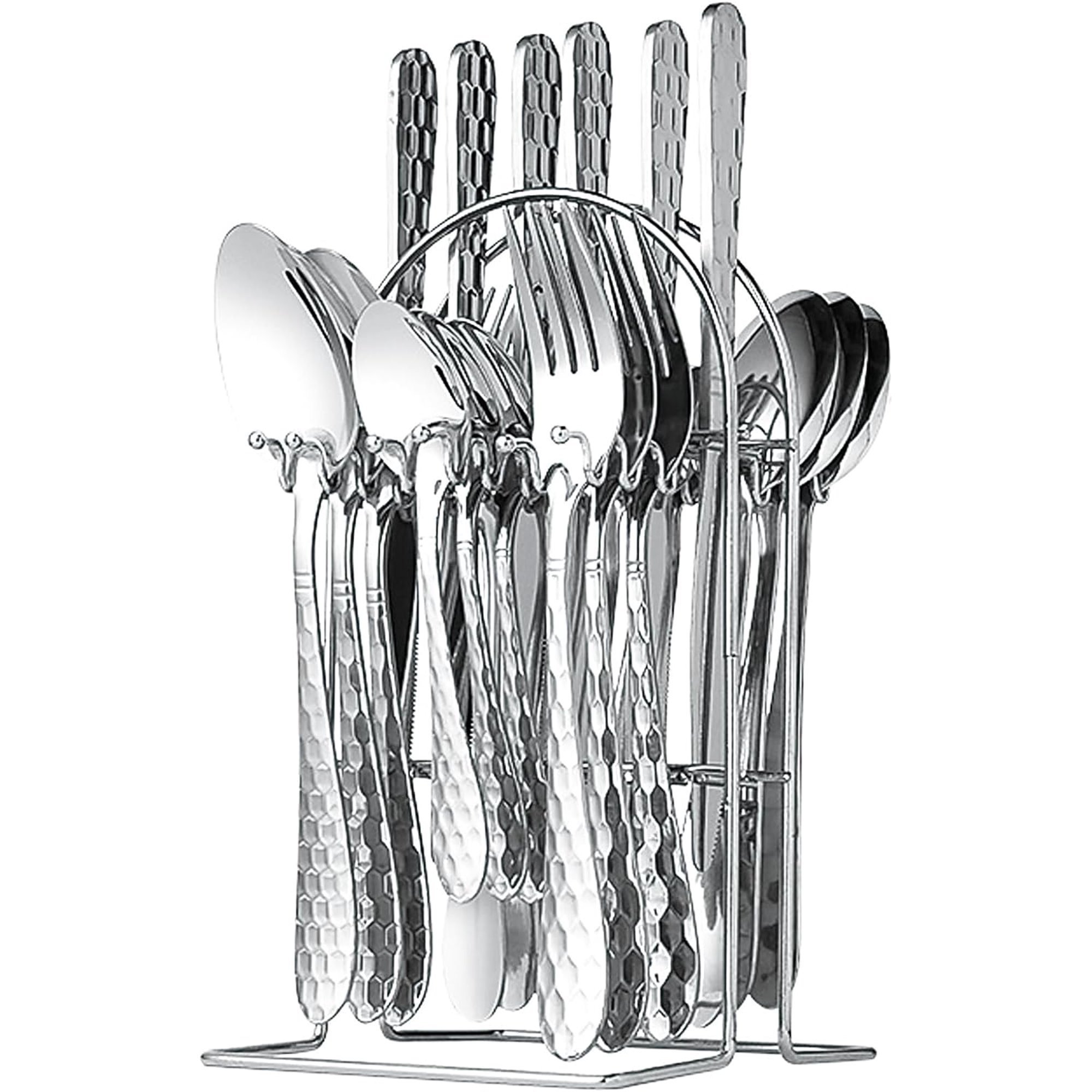 [Silverware Set with Holder]This hanging cutlery set is equipped with additional rack for easier storage and take, which helps to keep knives and forks dry and hygienic after cleaning. It can be placed in the corners of the dining table and kitchen, occupying no space, and making it more tidy.