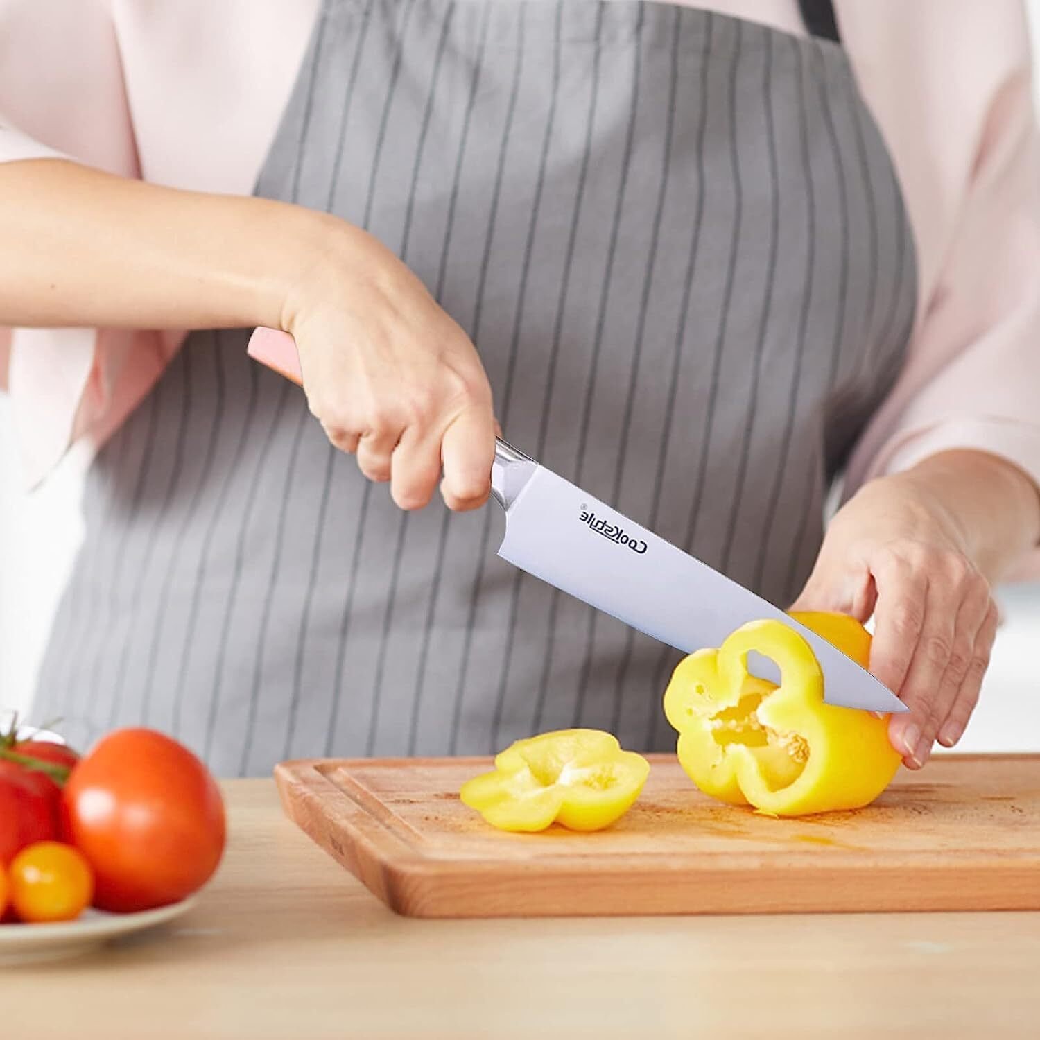 This set of rose gold kitchen knife set, which combines practicality and design, is an ideal choice whether it is bought for personal use or used as a gift,