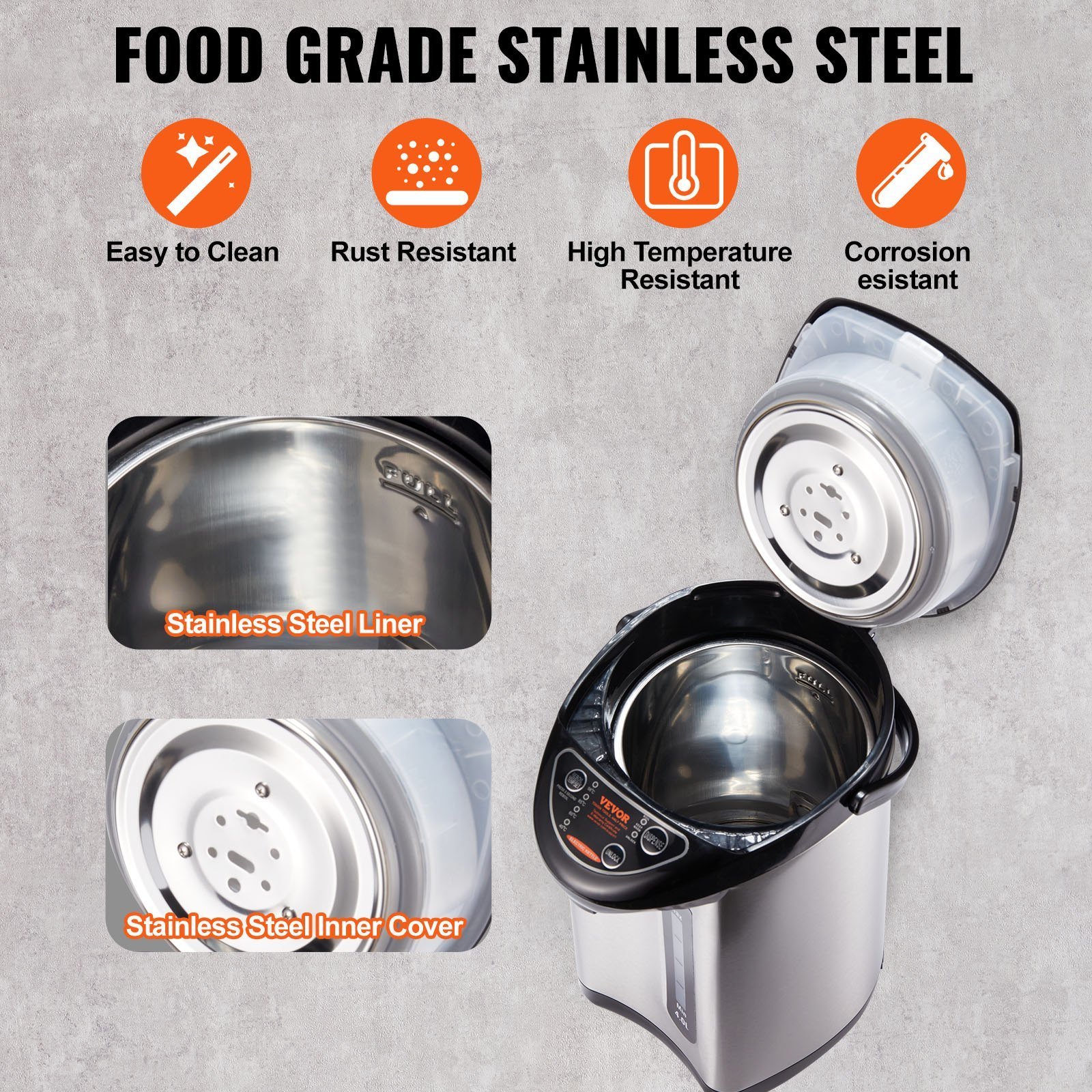 Crafted from food-grade materials, our hot water dispenser countertop boasts a 304 stainless steel inner liner and inner cover. This feature ensures rust resistance, high temperature, and corrosion resistance. The lid easily detaches with a press for effortless cleaning.
