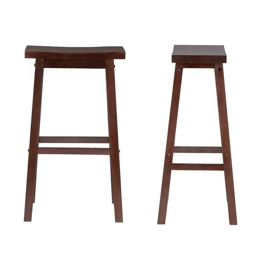 • Set of 2 Farmhouse Bar Height Saddle Seat Barstools in Brown Walnut Wood Finish