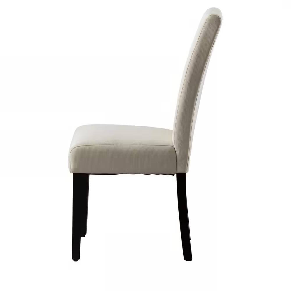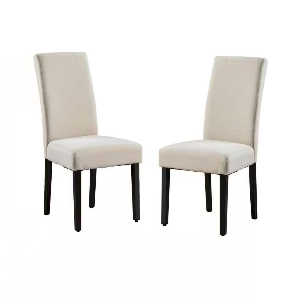Easily upgrade your kitchen with this Set of 2 Modern Beige Cream Fabric Upholstered Dining Chair with Black Wood Legs. Featuring upholstery, the chairs are available in a range of colors to complement your decor. The clean, armless design elevates any space with timeless panache. The chair is covered with fabric material and padding with wooden legs making it more solid with a modern style.