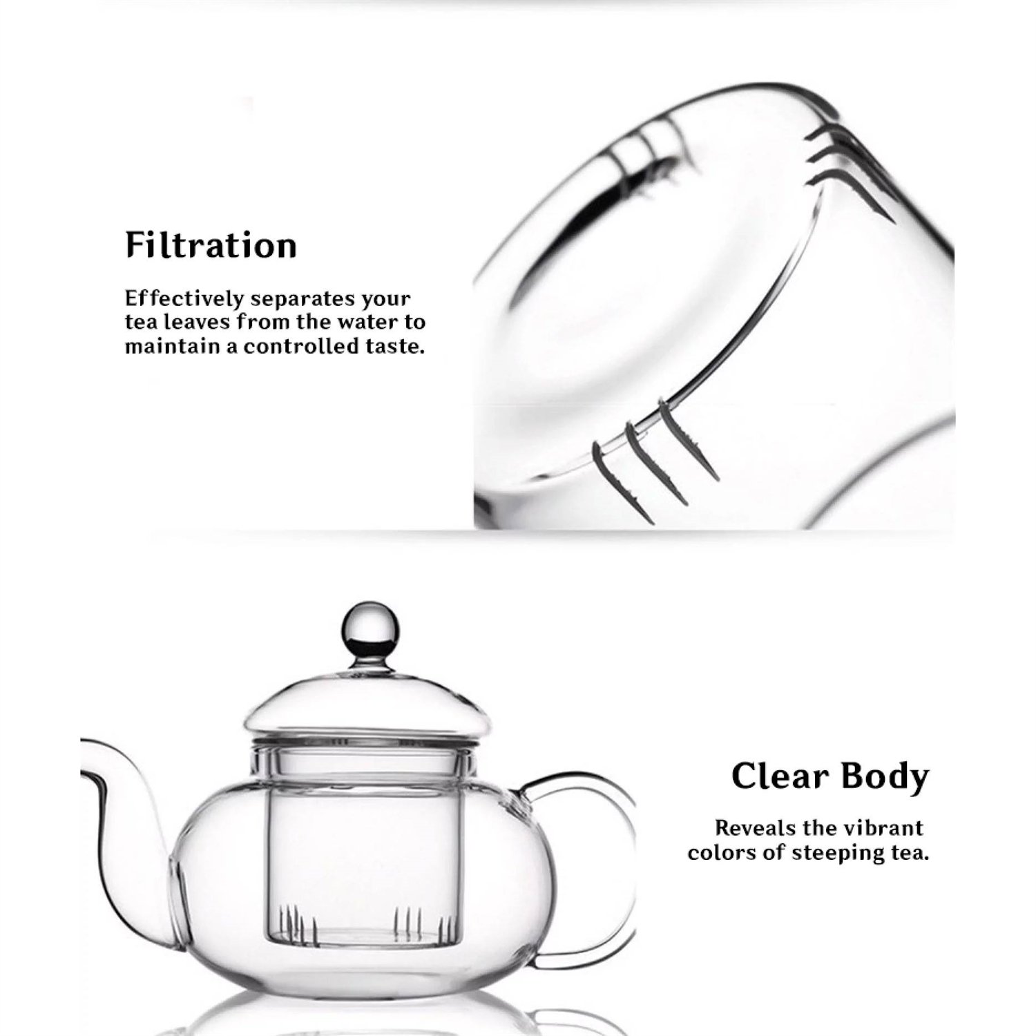 • 33.8 oz/ 1 Liter Borosilicate Glass Teapot with Removable Filter Infuser