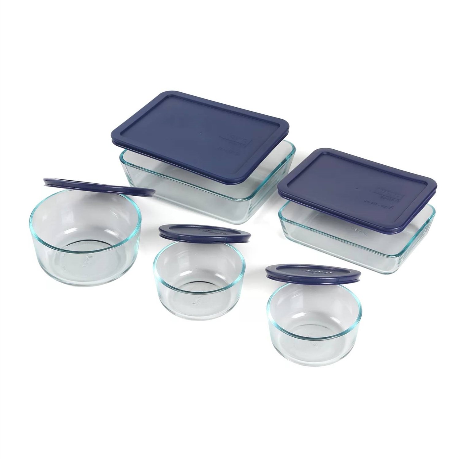 Home > 10-Piece Glass Bakeware Food Storage Set with Blue Plastic Lids Dishwasher Safe