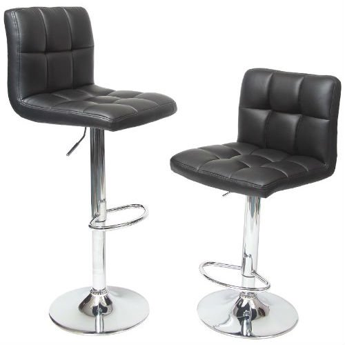 Set of 2 - Adjustable Height Bar Stool with Black Faux Leather Cushion Seat Set of 2 - Adjustable Height Bar Stool with Black Faux Leather Cushion Seat Set of 2 - Adjustable Height Bar Stool with Black Faux Leather Cushion Seat
