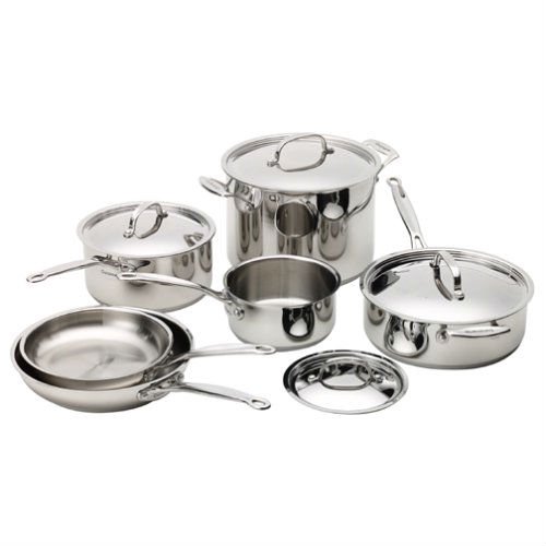 Inspired by the great French kitchens, this 10-Piece Stainless Steel Cookware Set would be a great addition to your home. Constructed of the finest materials available, to perfectly perform all of the classic cooking techniques. Designed to last a lifetime, Cuisinart cookware makes family meals memorable and entertaining a pleasure. Savor the Good Life right at home, with family and friends. Cuisinart makes it absolutely delicious. The set is an investment that will prove its worth every time you use it. Exclusively designed aluminum encapsulated base provides superior heat conductivity and even heat distribution to meet the demands of gourmet chefs everywhere. When properly cared for, your stainless cookware will give countless years of service and pleasure. Follow the use and care suggestions in this leaflet to preserve and maintain the cookware’s original beauty. This versatile 10-pc. set lets you cook several dishes at once in portions large and small. Two saucepans, two skillets, a sauté pan and stockpot make preparing a variety of meals easy.