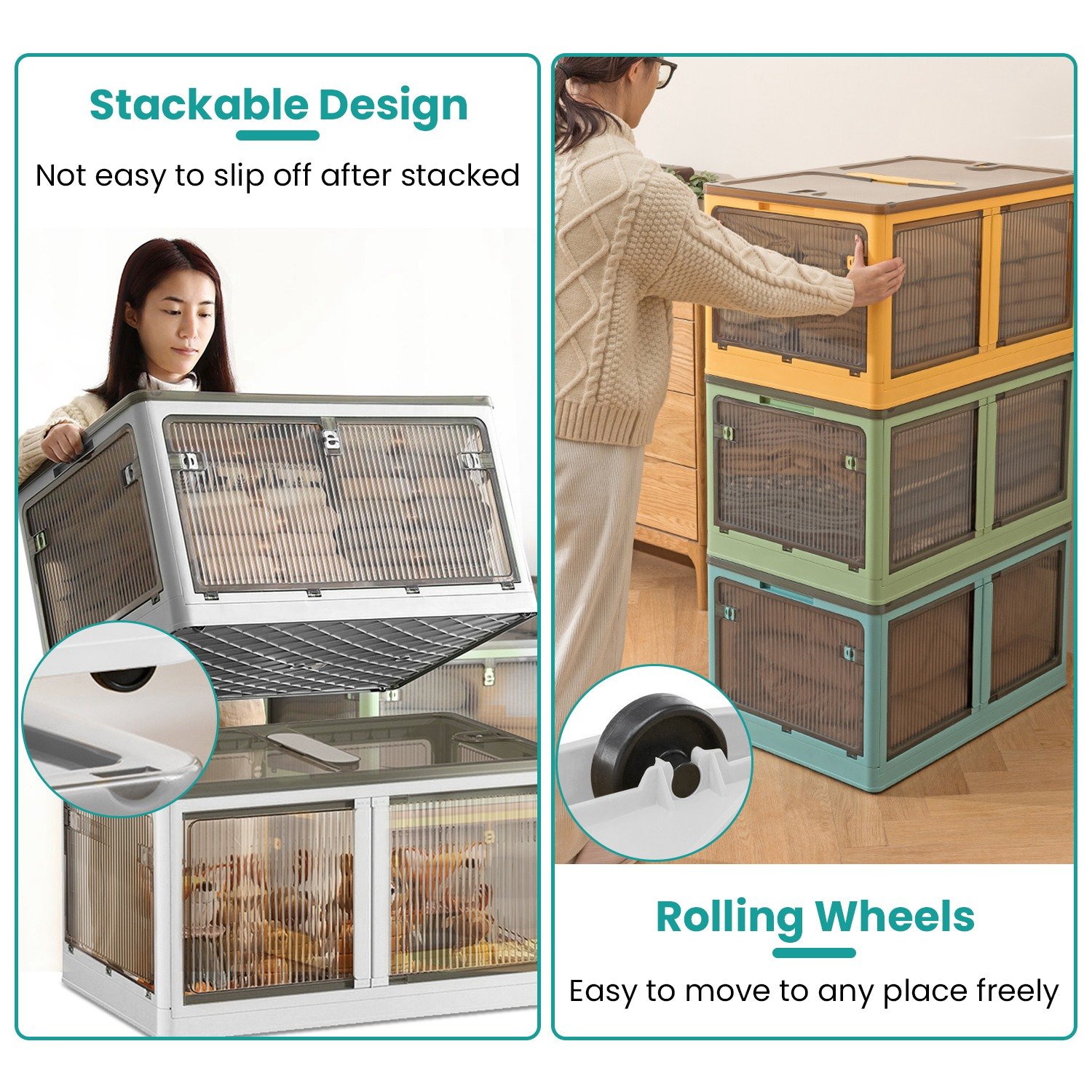 3Pcs Foldable Storage Bins with Lid 4 Doors Collapsible Stackable Closet Organizer Containers with Lock 4Pcs Wheels