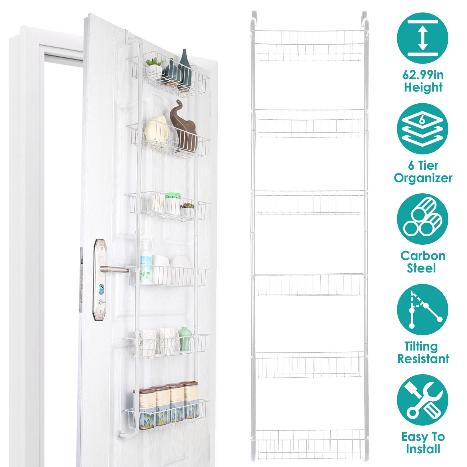 Home > 6 Tier Over Door Pantry Organizer Hanging Hooks Door Storage Rack Carbon Steel Basket 62.99in Over Door Shelf for Kitchen Bathroom