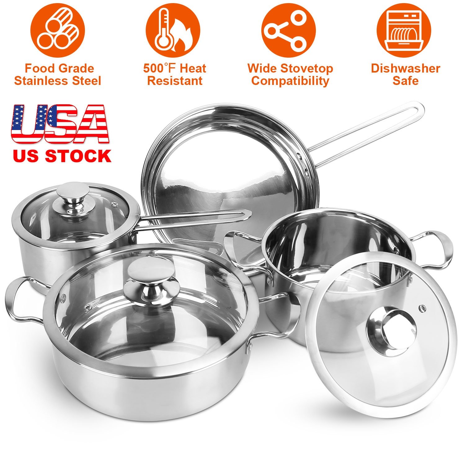 Home > Stainless Steel Cookware Set Fast Even Heat Induction Pots Pans Set Dishwasher Safe with 2.7/3.7 Quart Stockpot 2 Quart Saucepan 9.17in Frying Pan