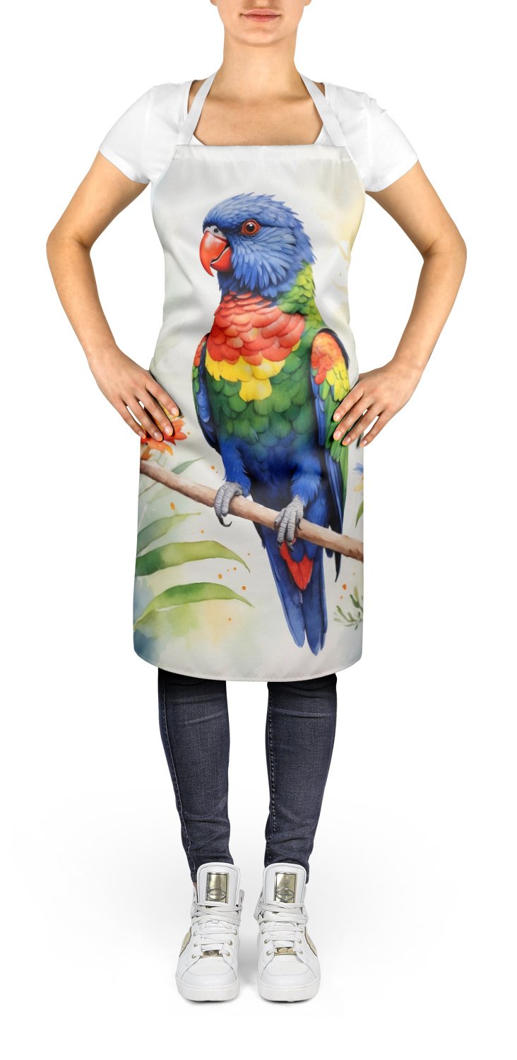 Apron featuring breed specific Rainbow Lorikeet artwork. Elevate your cooking, baking, and grilling experiences with our versatile Kitchen or BBQ Apron. This Bib Style apron isn't just limited to culinary activities - it also serves as an excellent baking apron, artist apron, server apron, gardening apron, or even a dog grooming apron. The apron showcases vibrant full-color artwork contributed by one of our talented artists, bringing a dash of style to your daily tasks. With dimensions of approximately 27"W x 30"H, it provides ample coverage to protect your clothing from spills and splashes. Our apron is meticulously crafted from 100% Ultra Spun Polyester, known for its durability and lightweight nature. The apron comes with white tie straps, ensuring a comfortable and adjustable fit for all. It's a perfect choice for kitchen apron enthusiasts, whether you are a woman or a man. Designed for easy maintenance, this apron is fully machine washable. The quick-drying polyester material actively reduces staining, keeping your apron looking fresh and new for longer. Our beautifully designed apron isn't just a functional kitchen accessory - it's a fashion statement in the culinary world!