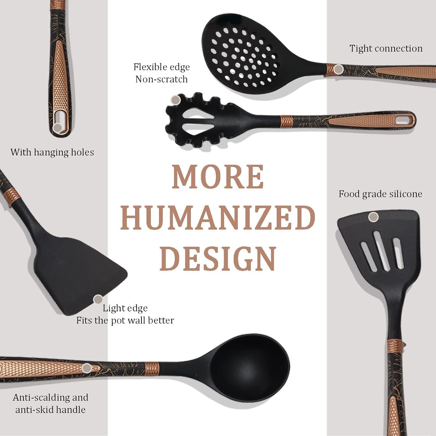 Home > Silicone Cooking Utensils Set, Luxury 7 Pcs Kitchen Utensils Set with Hanging Holder, Heat Resistant Spatula Turner Set for Nonstick Cookware