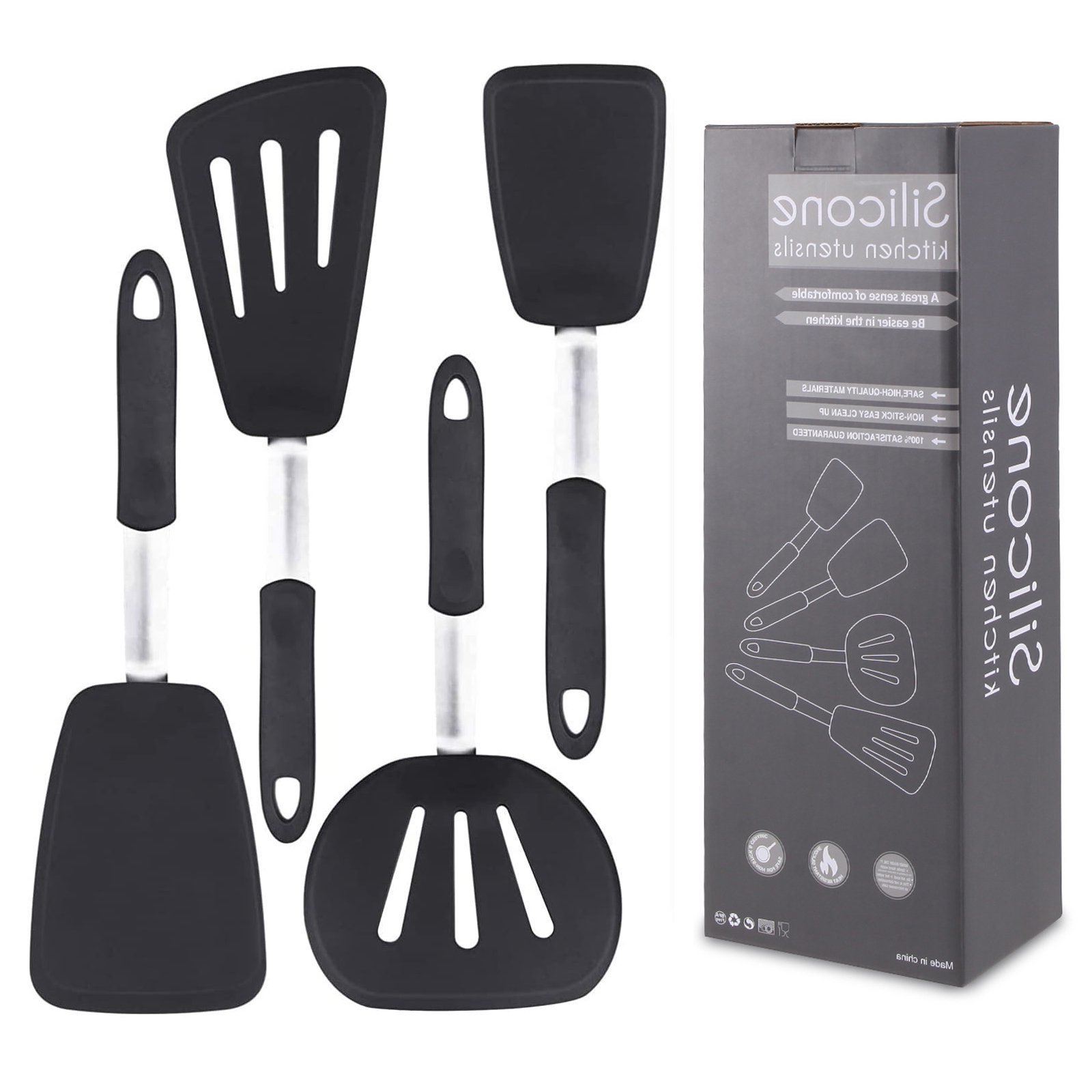 [4 Piece Spatulas for Nonstick Cookware]The silicone spatula set includes 4 large spatulas for all your cooking needs. Ideal for flipping steak, egg, pancake, fish, burger etc.