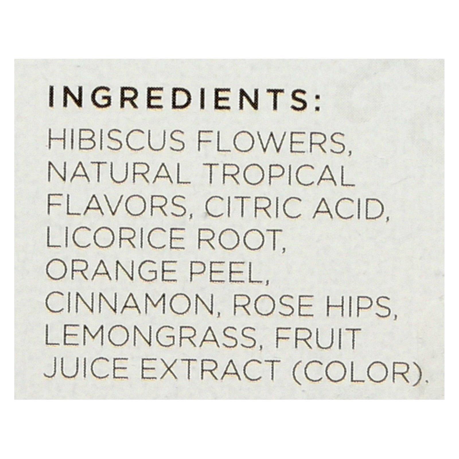 ingredients : hibiscus flowers;natural flavors;citric acid;licorice root;orange peel;cinnamon;rose hips;lemon-grass;fruit juice extract (for color)