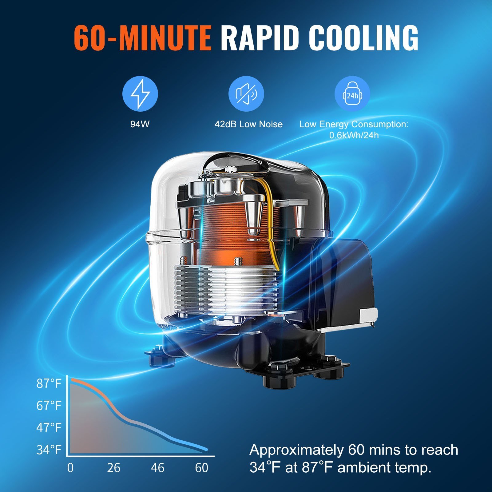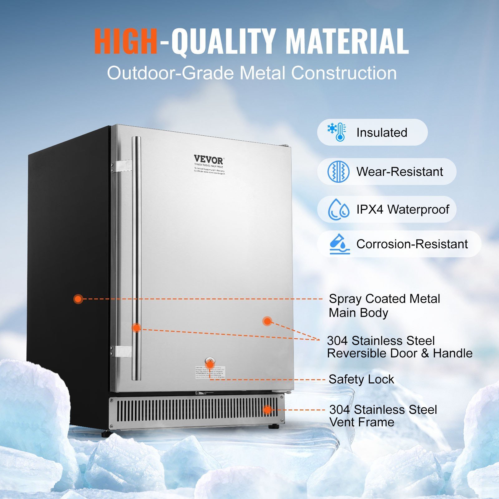 1.Rapid Cooling Performance: Our 24" outdoor beverage refrigerator adopts an upgraded compressor, experiencing swift refrigeration. At an ambient temperature of 87°F, it reaches 34°F in approximately 60 minutes. With a spacious 185QT capacity, the beverage refrigerator is perfect for storing beer, drinks, fruits, seafood, meats, and more, catering to all your daily needs.