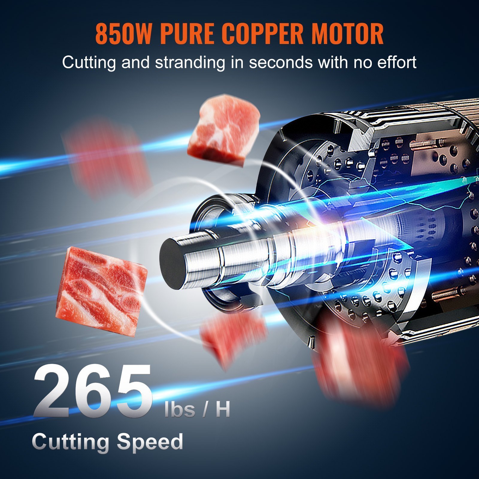 2.Stable & Efficient: The 850W pure copper motor provides impressive power, and the sharp stainless steel saw blade, along with precision gears, ensures a cutting efficiency of up to 265 lbs/H. Our electric bone cutting machine cuts smoothly without jamming, allowing you to easily cut various hard bones and frozen meat with a gentle push.