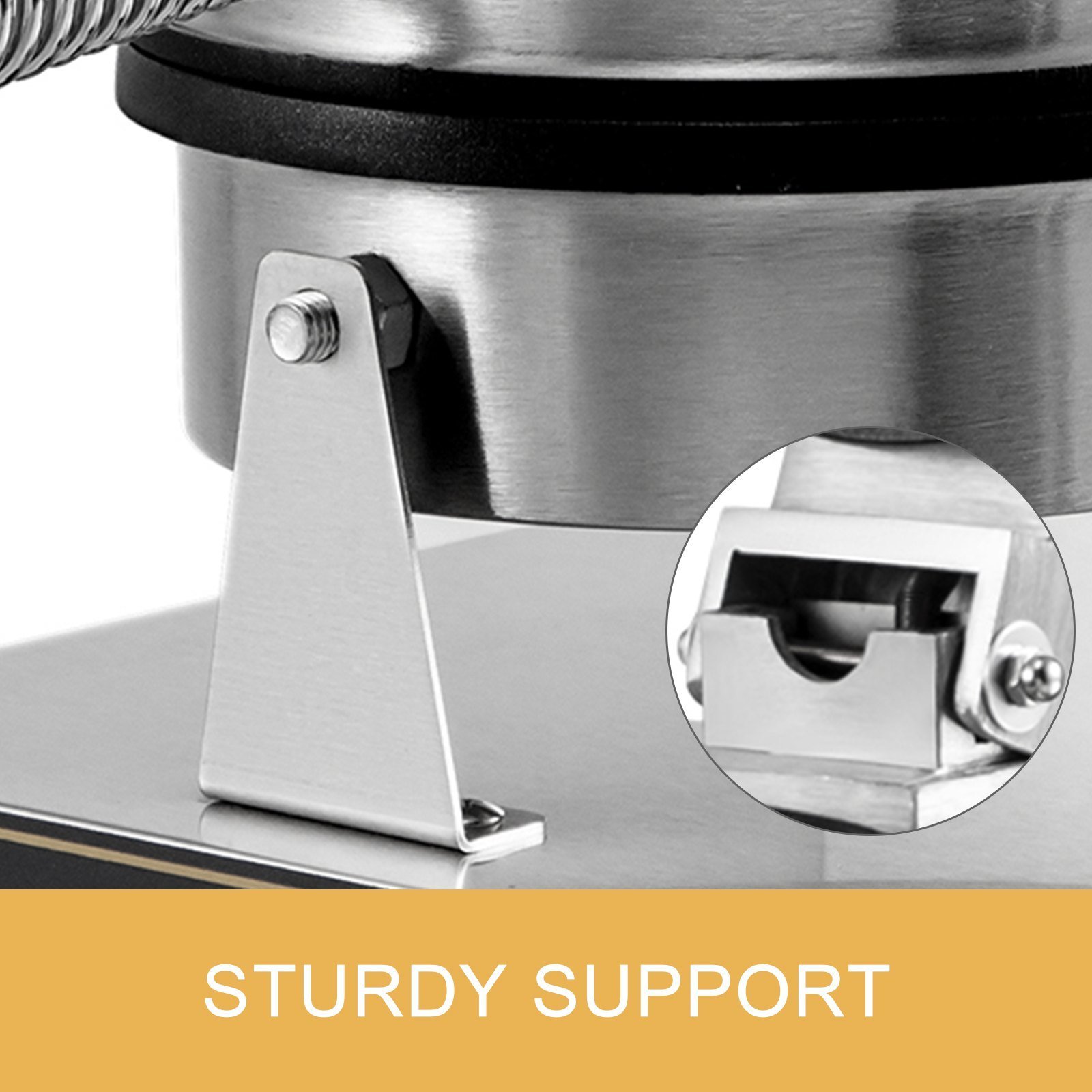 3.ADVANCED QUALITY- Stainless steel machine body, easy cleaning and stands up for longer working period. Sturdy and smooth joints between two pans provide reassuring usage. Front support adopts stable triangular structure. Four foot pads remain machine steady.