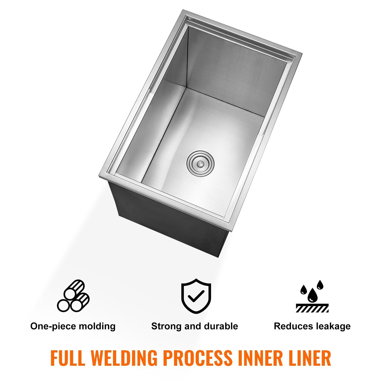 VEVOR Drop in Ice Chest, 27"L x 18"W x 21"H Stainless Steel Ice Cooler, Commercial Ice Bin with Sliding Cover, 40.9 qt Outdoor Kitchen Ice Bar