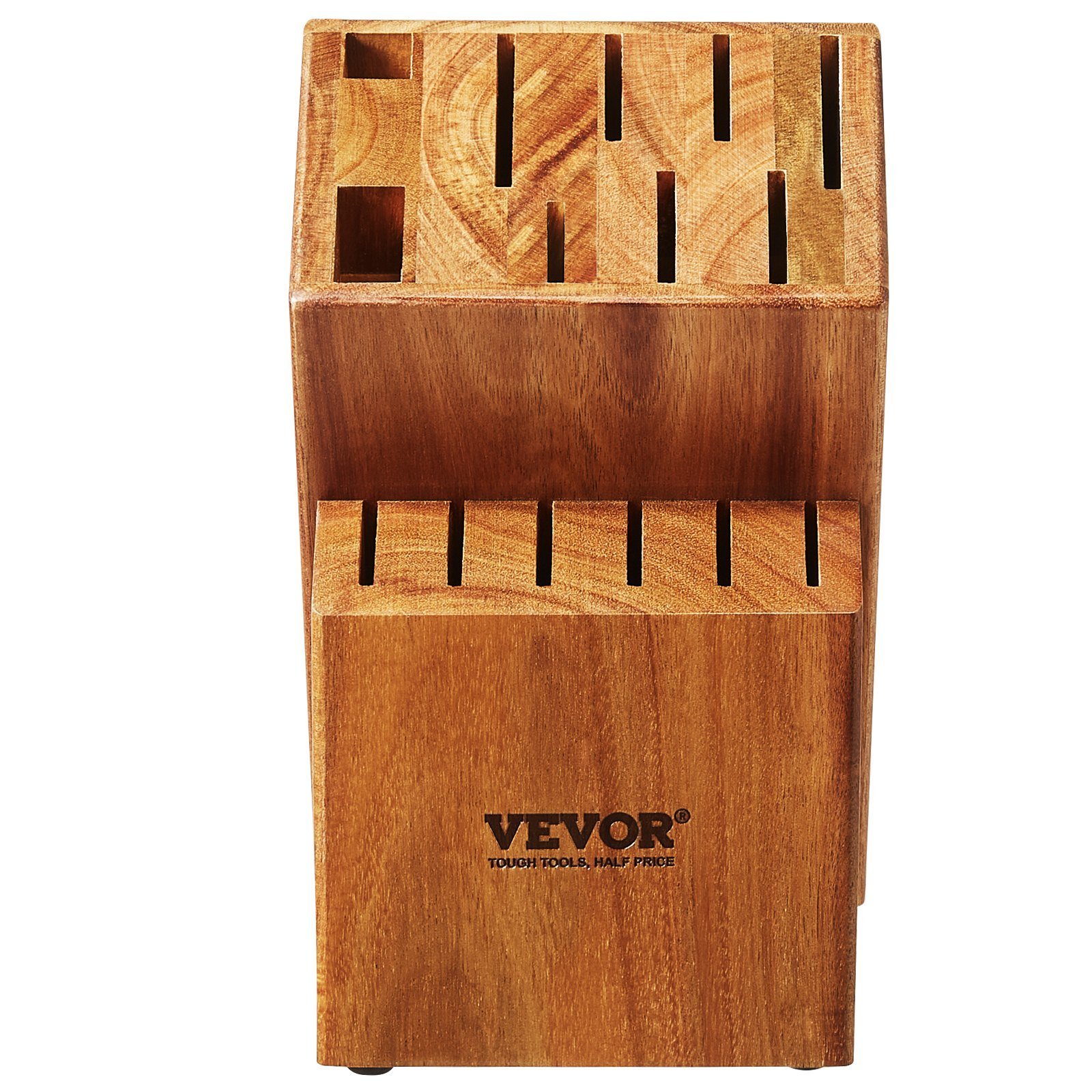 1.15 Universal Slots: Our knife storage block can hold up to 13 knives, with 2 additional slots for storing scissors and a honing rod. It can accommodate commonly used knives such as chef's knives, steak knives, and meat cleavers, while also making it easy for you to organize them. (Please note: This product does not include knives.)