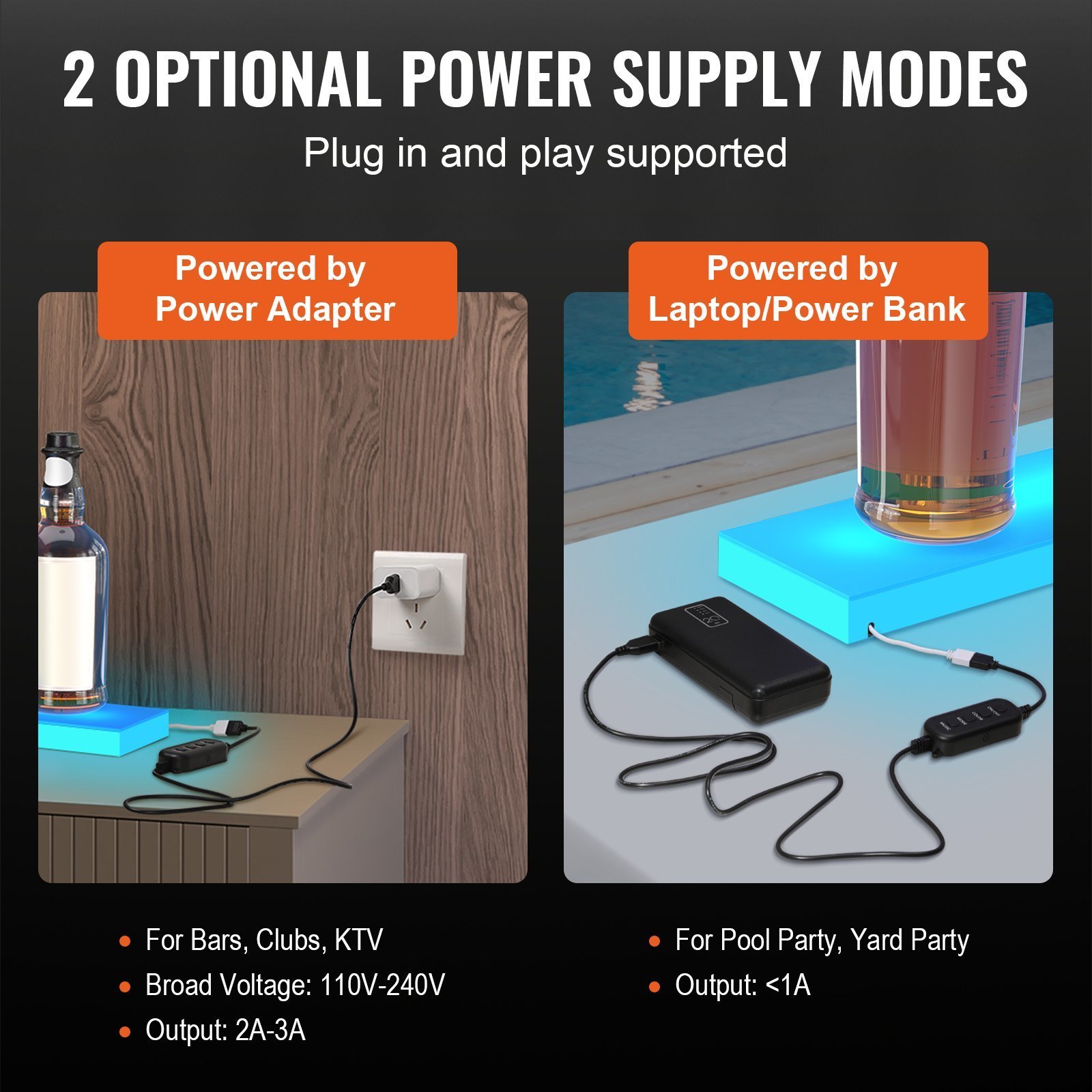 3.Power Up and Keep the Party Going: No matter where the party is, our lighted bar shelves never run out of power. They can be powered by a 110-240 V power adapter and a laptop / power bank. Let the party live on! Due to two power supply methods, our product can satisfy indoor and outdoor activities. Charge up, party, and live it up till the sun comes up.