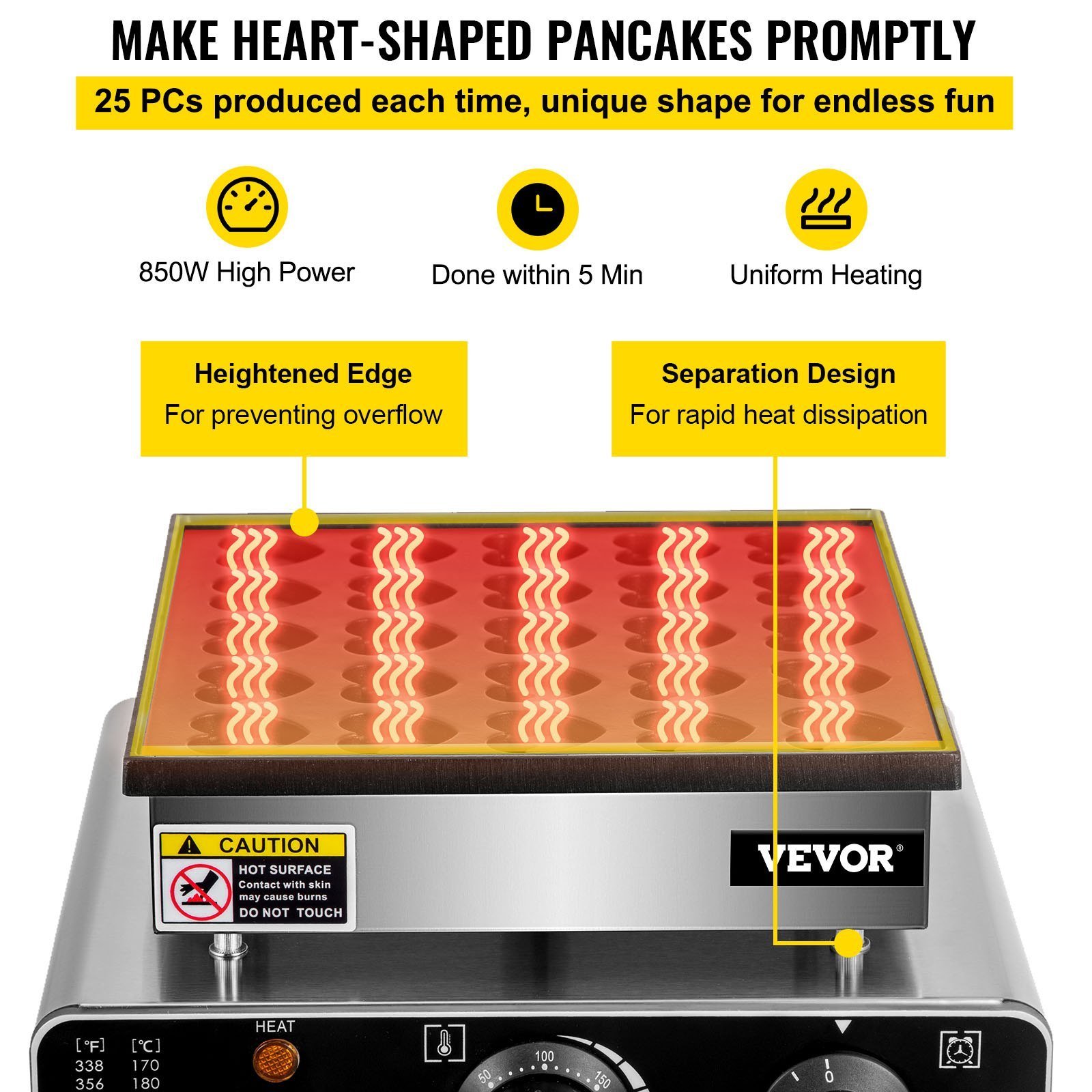 VEVOR Mini Dutch Pancake Maker, Heart-Shaped Dutch Pancake Machine, 25PCs Pancake Maker Electric Commercial, 850W Mini Pancake Maker