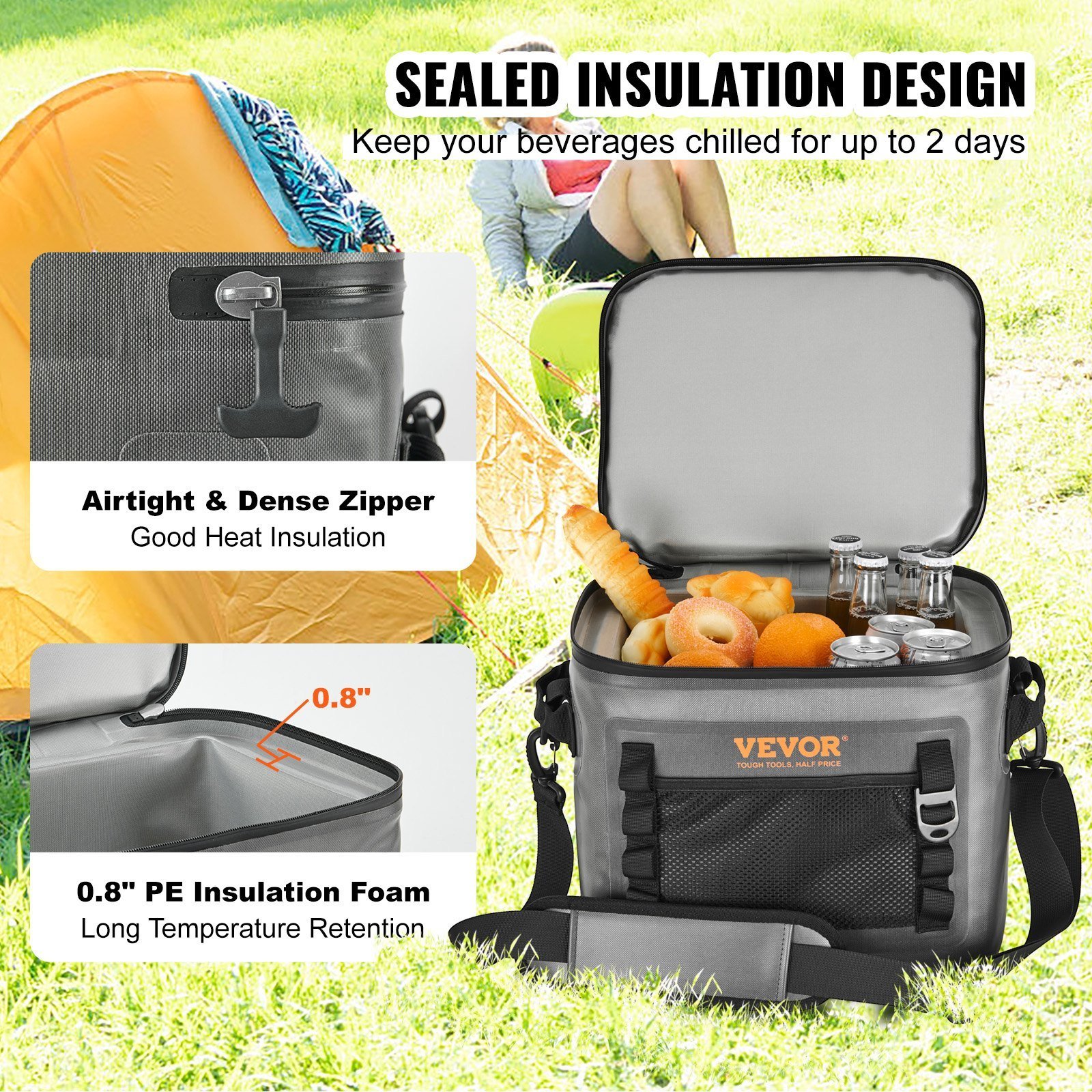 Home > VEVOR Soft Cooler Bag, 24 Cans Soft Sided Cooler Bag Leakproof with Zipper, Waterproof Soft Cooler Insulated Bag