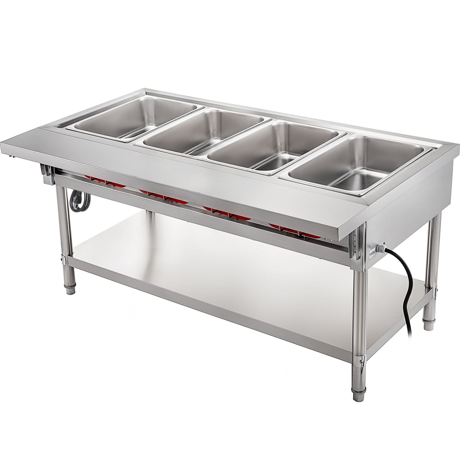 This 3000w steam table is made of food-grade stainless steel, not easy to deformed and easy cleaning. It can hold 4 food pans, whose temperature can be independently controlled by 4 rotary knobs. With temperature 30-100°C (86-212°F) adjustable. It is widely used in restaurants, canteens, and other catering industries.